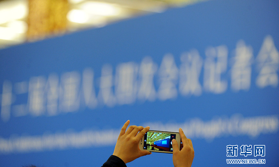 3月16日上午,國務(wù)院總理李克強(qiáng)在人民大會(huì)堂三樓金色大廳會(huì)見采訪十二屆全國人大四次會(huì)議的中外記者并回答記者提出的問題。圖為記者在拍照。新華網(wǎng)/中國政府網(wǎng) 陳競超 攝