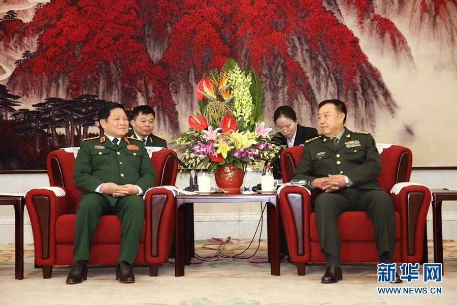 1月13日,中央軍委副主席范長龍?jiān)诒本┌艘淮髽菚?huì)見越南國防部長吳春歷。新華社發(fā)(劉芳 攝)