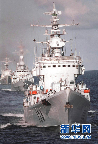 中國(guó)海軍導(dǎo)彈驅(qū)逐艦、護(hù)衛(wèi)艦編隊(duì)巡邏在祖國(guó)的萬(wàn)里海疆(資料照片)。新華社發(fā)