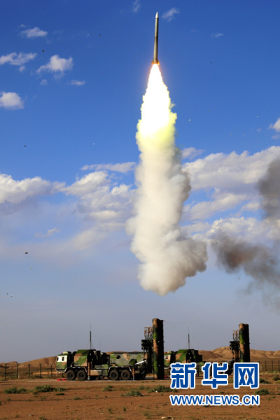 空軍地空導(dǎo)彈兵第二營在執(zhí)行“藍盾”演習(xí)任務(wù)中進行實彈發(fā)射(2016年7月14日攝)。新華社發(fā)
