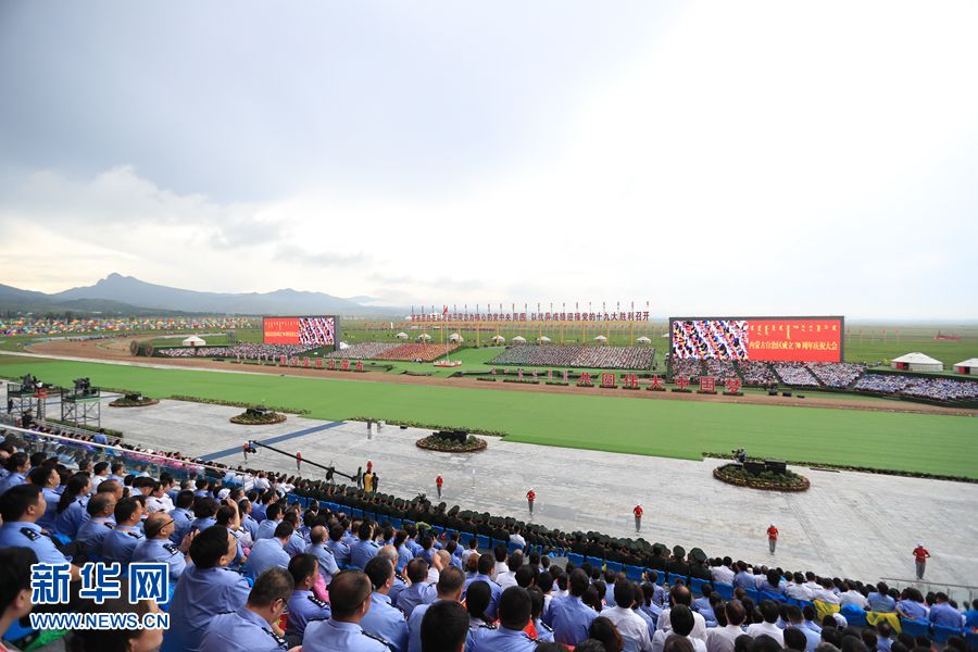 8月8日,內(nèi)蒙古自治區(qū)成立70周年慶祝大會在呼和塔拉內(nèi)蒙古少數(shù)民族群眾文化體育運動中心舉行。圖為大會現(xiàn)場。新華網(wǎng)記者 陳杰 攝