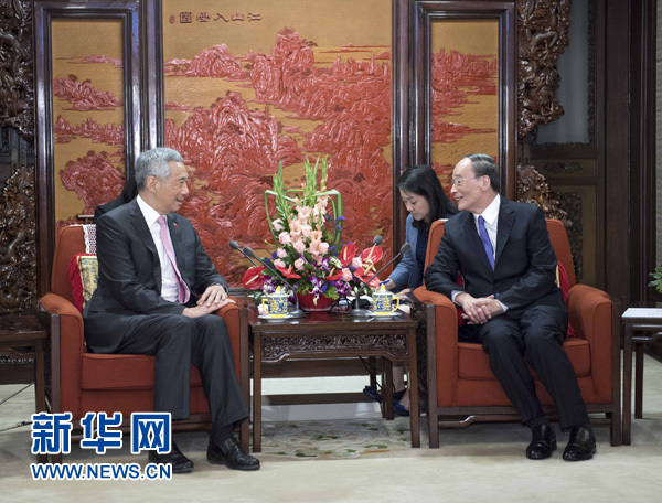 9月20日,中共中央政治局常委、中央紀(jì)委書記王岐山在北京會(huì)見新加坡總理李顯龍。 新華社記者 李濤 攝