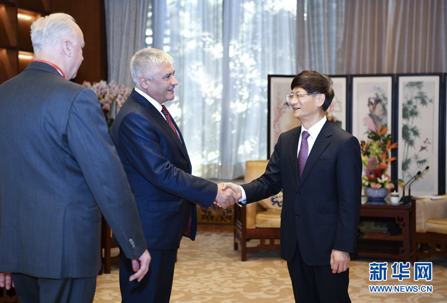 9月26日,中共中央政治局委員、中央政法委書記孟建柱在北京會見來華出席國際刑警組織第86屆全體大會的俄羅斯內(nèi)務(wù)部長科洛科利采夫(左二)和俄聯(lián)邦調(diào)查委員會主席巴斯特雷金(左一)。新華社記者 張領(lǐng) 攝