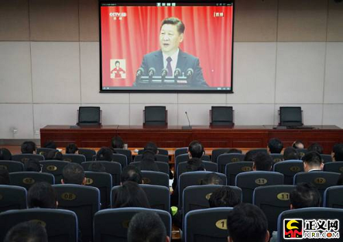中國共產(chǎn)黨第十九次全國代表大會18日上午在人民大會堂開幕。習(xí)近平總書記代表第十八屆中央委員會向大會作了題為《決勝全面建成小康社會 奪取新時代中國特色社會主義偉大勝利》的報告。國家檢察官學(xué)院黨員干部集體收看收聽了開幕式。徐鵬宇攝