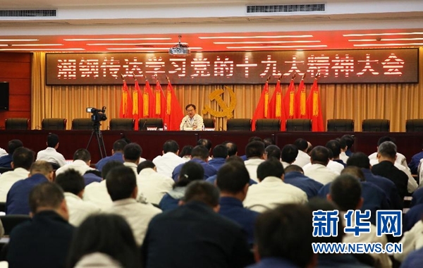 10月30日,王樹春向湖南華菱湘潭鋼鐵有限公司員工宣講黨的十九大精神。十九大代表、湖南華菱湘潭鋼鐵有限公司黨委書記王樹春從北京回到鋼廠,下車后直奔會(huì)議室,激動(dòng)地向等待在此的班子成員傳達(dá)十九大精神。對(duì)這個(gè)流著紅色血液、有著9693名黨員、剛剛擺脫生存困境的老鋼廠來說,十九大精神無疑帶來了新希望、吹響了新號(hào)角。新華社發(fā)