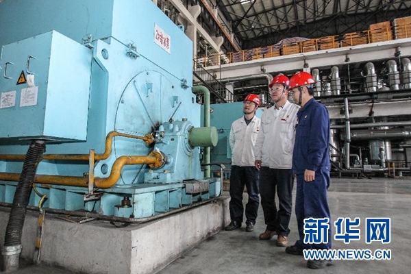10月31日,王樹春(中)在湖南華菱湘潭鋼鐵有限公司135MW超高壓發(fā)電項(xiàng)目廠房中了解設(shè)備運(yùn)行狀況。十九大代表、湖南華菱湘潭鋼鐵有限公司黨委書記王樹春從北京回到鋼廠,下車后直奔會(huì)議室,激動(dòng)地向等待在此的班子成員傳達(dá)十九大精神。對(duì)這個(gè)流著紅色血液、有著9693名黨員、剛剛擺脫生存困境的老鋼廠來說,十九大精神無疑帶來了新希望、吹響了新號(hào)角。新華社記者 王天聰 攝