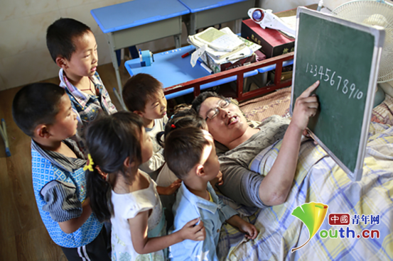 由于葉海濤的雙下肢關(guān)節(jié)僵直,沒有辦法筆直地坐著,他便躺在病床上,側(cè)著身子用小黑板給孩子們講解題目??墒沁@樣一來,躺的時(shí)間一旦久了,葉海濤的身體便會(huì)全都麻木,疼痛難忍。但他卻始終堅(jiān)持著……最難熬的是夏季,他睡在板床上長(zhǎng)時(shí)間保持同一個(gè)姿勢(shì),全身都被汗水浸透了,額頭上黃豆般大小的汗珠不斷地冒出,滾落到板床上,床面已經(jīng)被浸濕。常人都難以忍受,更何況是患病在床的葉海濤呢?在這種異常難受的狀態(tài)下,葉海濤憑借自己驚人的毅力,克服困難,十八年如一日,堅(jiān)持為孩子們輔導(dǎo)功課。這份教學(xué)工作,是繁雜的,須深入學(xué)習(xí)、不斷鉆研,研究教學(xué)思路。為了更好地勝任這份輔導(dǎo)任務(wù),他經(jīng)常在空余時(shí)間閱讀有關(guān)教育方面的書籍。
