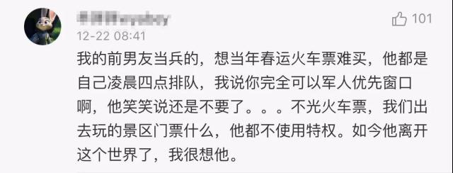 @木曰勿o:記得哥哥今年休假帶我出去玩,買票的時候我說不是有軍人優(yōu)先么,他說一般沒什么緊急大事,該排隊的還是要排隊。(他們真的很不容易,休假在家都是隨時待命。)