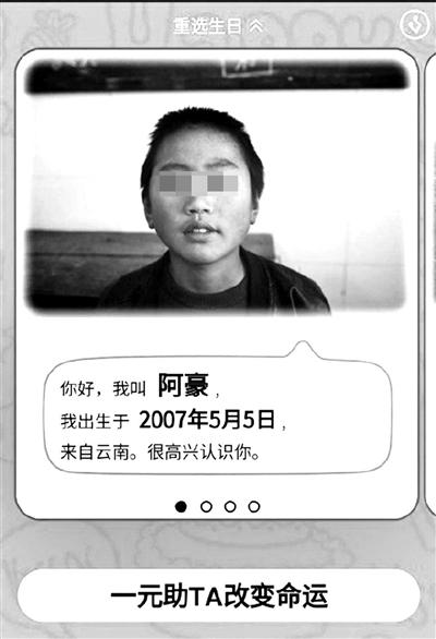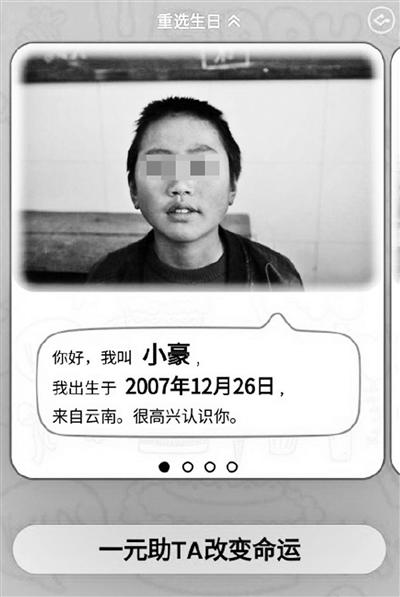 然而,很快有網(wǎng)友“曬”出了這個(gè)活動(dòng)的疑點(diǎn):在5月5日出生的受助人顯示為“阿豪,出生于2007年”,同一張照片也在12月26日的受助人一欄中出現(xiàn),姓名變成了“小豪”。