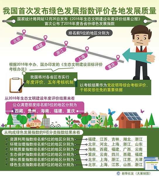 圖表:我國首次發(fā)布綠色發(fā)展指數(shù)評價各地發(fā)展質(zhì)量 新華社發(fā) 大巢制圖