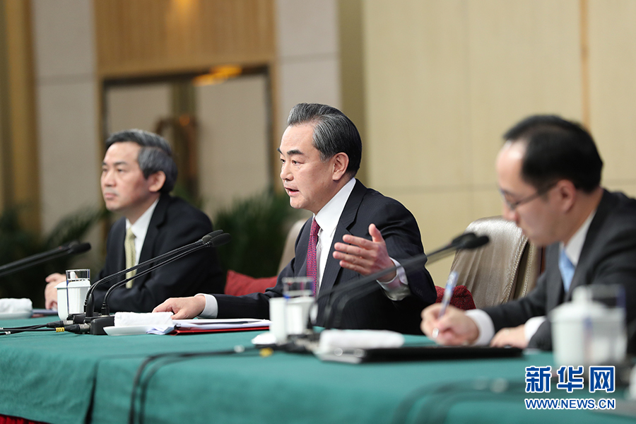 十二屆全國人大五次會議新聞中心于3月8日(星期三)10時在梅地亞中心多功能廳舉行記者會,邀請外交部部長王毅就“中國的外交政策和對外關系”的相關問題回答中外記者的提問。圖為外交部部長王毅回答現(xiàn)場記者提問。新華網/中國政府網 孫韜 攝