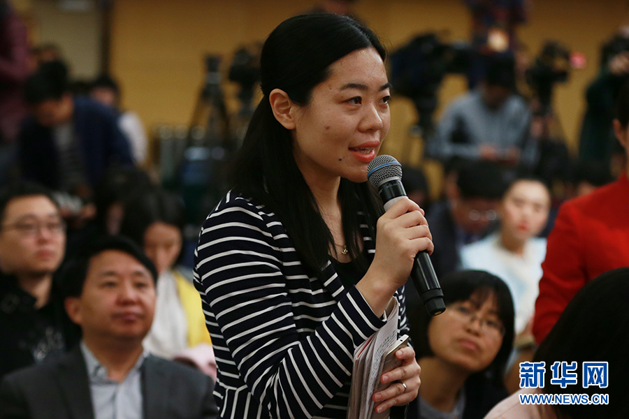 3月11日,十二屆全國人大五次會議新聞中心舉行記者會,邀請工業(yè)和信息化部部長苗圩、副部長辛國斌和總工程師、新聞發(fā)言人張峰就“推進(jìn)實(shí)施‘中國制造2025’”的相關(guān)問題回答中外記者的提問。圖為香港紫荊雜志記者提問。新華網(wǎng)/中國政府網(wǎng) 傅義洲 攝