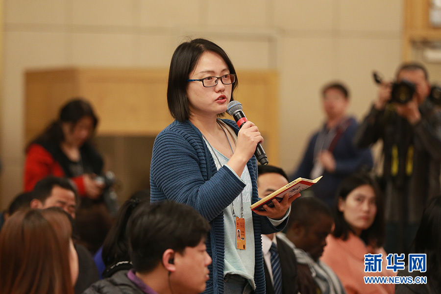 3月11日,十二屆全國人大五次會議新聞中心舉行記者會,邀請科技部部長萬鋼、秘書長徐建培就“2016年創(chuàng)新驅(qū)動發(fā)展戰(zhàn)略實施進展成效和2017年重點工作”的相關(guān)問題回答中外記者的提問。圖為經(jīng)濟日報記者提問。新華網(wǎng)/中國政府網(wǎng) 王健 攝