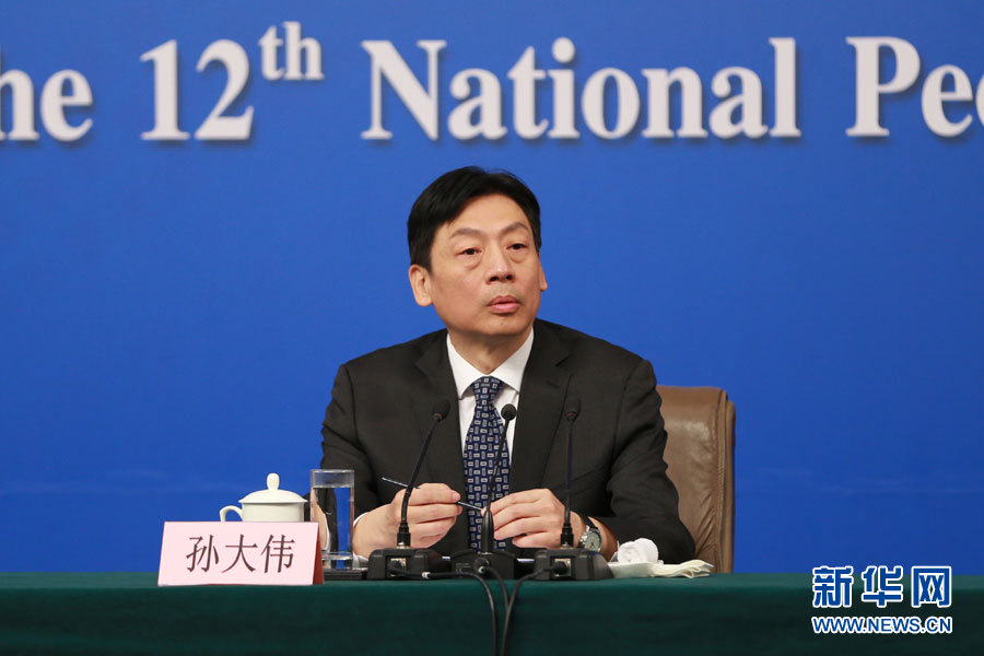 3月14日,十二屆全國人大五次會議新聞中心舉行記者會,邀請國家質(zhì)檢總局局長支樹平、副局長兼國家認證認可監(jiān)督管理委員會主任孫大偉、國家標準化管理委員會主任田世宏就“質(zhì)量提升”的相關問題回答中外記者的提問。圖為國家質(zhì)檢總局副局長兼國家認證認可監(jiān)督管理委員會主任孫大偉。新華網(wǎng)/中國政府網(wǎng) 傅義洲 攝