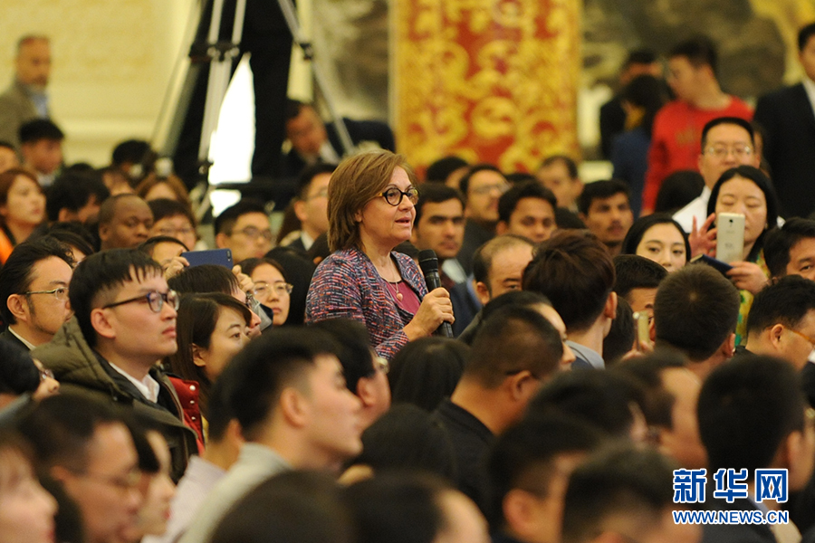 3月15日上午,國務(wù)院總理李克強(qiáng)在人民大會(huì)堂三樓金色大廳會(huì)見采訪十二屆全國人大五次會(huì)議的中外記者并回答記者提出的問題。圖為法蘭西廣播公司記者提問。新華網(wǎng)/中國政府網(wǎng)?孫韜 攝?