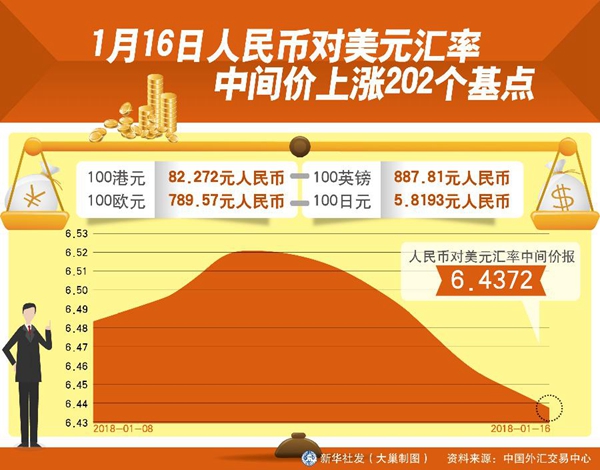??? 17日,人民幣對(duì)美元中間價(jià)報(bào)6.4335,創(chuàng)2015年12月10日以來(lái)新高。對(duì)越來(lái)越多走出國(guó)門的中國(guó)人來(lái)說(shuō),人民幣值不值錢很重要。記者算了一筆賬,以17日當(dāng)天的人民幣對(duì)美元中間價(jià)計(jì)算,與去年同期比,1萬(wàn)元人民幣能多換近105美元。一些計(jì)劃春節(jié)出游或有留學(xué)需求的人們甚至加快了換匯步伐。>>