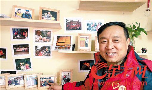 尚丙輝指著工作室里的照片介紹,每增加一張照片,就意味著又有一個流浪者回家了。 記者 朱清海/攝