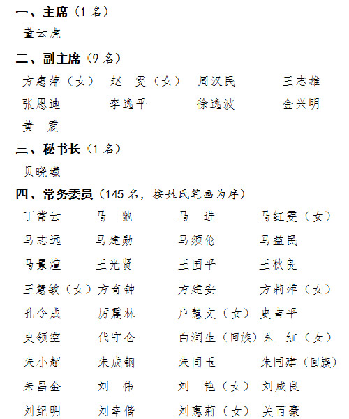1月27日,市政協(xié)舉行全體會議,審議通過選舉辦法,總監(jiān)票人、監(jiān)票人名單,選舉產(chǎn)生十三屆市政協(xié)主席董云虎,副主席方惠萍、趙雯、周漢民、王志雄、張恩迪、李逸平、徐逸波、金興明、黃震,秘書長貝曉曦,以及145名常務(wù)委員。