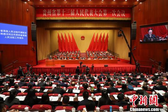 1月28日,貴州省十三屆人大一次會議舉行第二次全體會議。圖為貴州省高級人民法院代理院長韓德洋作貴州省高級人民法院工作報告?!■暮陚悺z