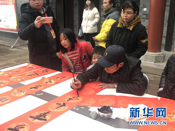 一位村民在寫春聯(lián)。 新華網(wǎng) 張世祥 攝