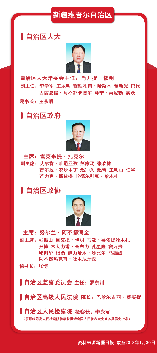 圖文速覽:31省區(qū)市新一屆人大政府政協(xié)領(lǐng)導(dǎo)班子