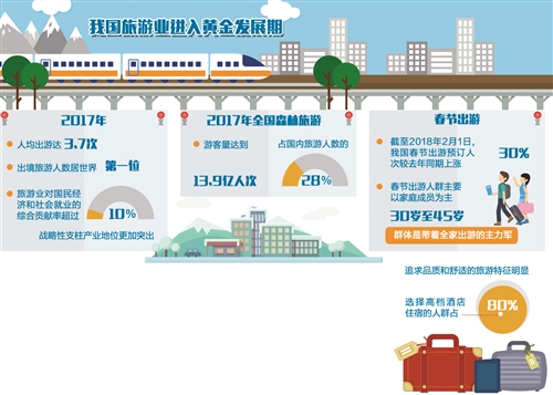 眾信旅游發(fā)布的數據顯示,截至2月1日,春節(jié)出游預訂人次較去年同期上漲30%。中國旅行社協(xié)會對外發(fā)布的《2018春節(jié)黃金周旅游趨勢報告》顯示,2018年春節(jié)期間,在旅游消費持續(xù)升溫的情況下,春節(jié)全家出游成為越來越多人的選擇,旅游過年人數有望創(chuàng)歷史新高。
