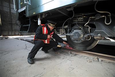 凌晨5點(diǎn)多,北京西車務(wù)段101站值班員趙志剛準(zhǔn)備回值班室的時(shí)候,風(fēng)開始大了?!耙钦婀纹饋恚裉炀鸵獌尚r(shí)巡視一次了,得仔細(xì)看看車廂底下的防溜鐵鞋”,趙志剛扶了扶有點(diǎn)吹歪的帽子。
