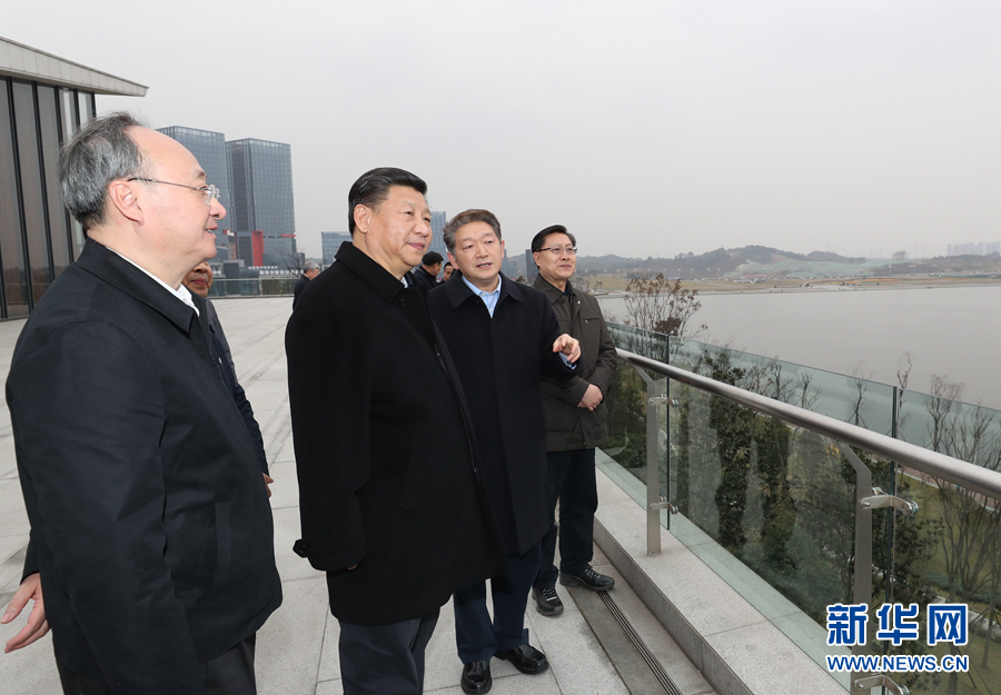這是2月11日下午,習近平在成都天府新區(qū)考察。 新華社記者 鞠鵬 攝