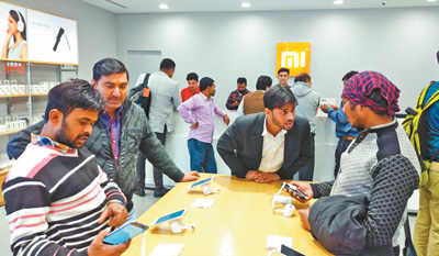 在南德里安必斯商場(chǎng)二樓的小米手機(jī)專賣(mài)店里場(chǎng)面同樣熱鬧。記者看到,購(gòu)買(mǎi)手機(jī)的人們正排著長(zhǎng)隊(duì),這樣的場(chǎng)景讓記者著實(shí)吃驚。店長(zhǎng)塔克解釋,今天是發(fā)薪日,人們有錢(qián)后就想購(gòu)買(mǎi)自己中意的手機(jī)。店內(nèi)的一名印度軍人告訴本報(bào)記者,他非常喜歡小米手機(jī),物美價(jià)廉。