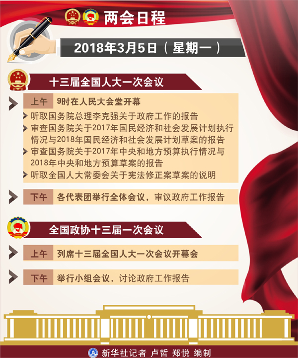 圖表:3月5日兩會日程 新華社記者 盧哲 鄭悅 編制