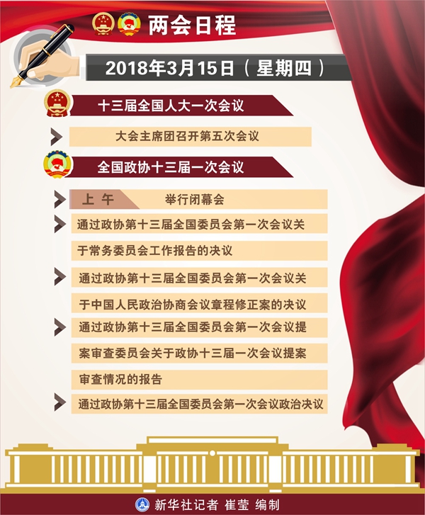 3月15日:全國政協(xié)十三屆一次會議舉行閉幕會
