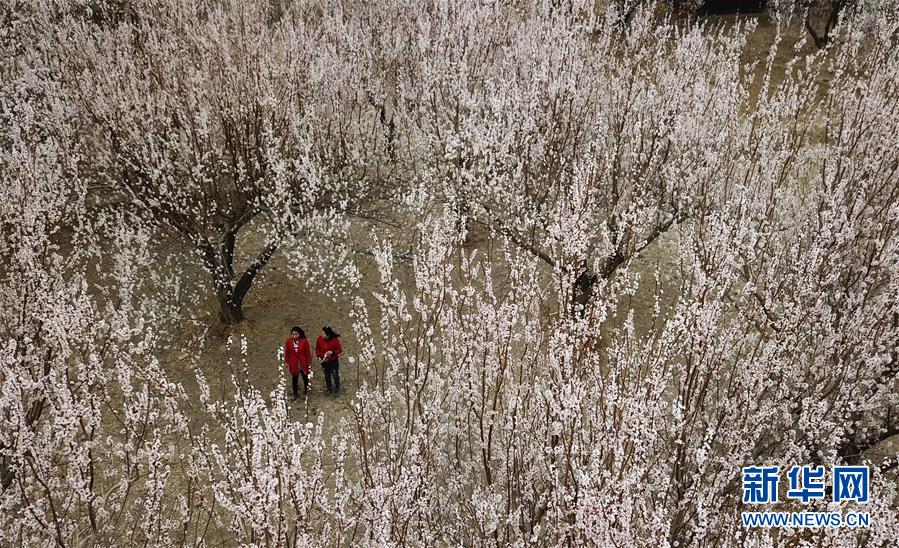 3月28日,游客在敦煌鳴沙山下的李廣杏園內(nèi)賞花。近日,甘肅省敦煌市鳴沙山下8000多畝李廣杏花競(jìng)相開放,吸引了眾多游客和市民踏青賞花。 新華社記者陳斌攝