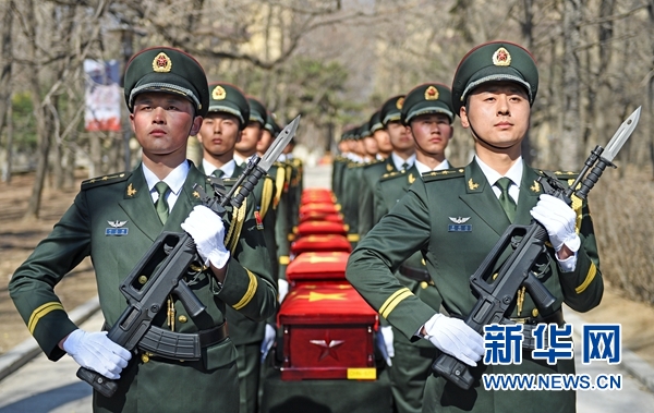 3月28日上午,中韓雙方在韓國(guó)仁川國(guó)際機(jī)場(chǎng)莊嚴(yán)舉行第五批在韓中國(guó)人民志愿軍烈士遺骸交接儀式。民政部副部長(zhǎng)高曉兵率代表團(tuán)出席交接儀式,中韓雙方代表現(xiàn)場(chǎng)簽署交接書,確認(rèn)交接20位中國(guó)人民志愿軍烈士遺骸及相關(guān)遺物。中方現(xiàn)場(chǎng)舉行悼念儀式后,中國(guó)駐韓國(guó)大使邱國(guó)洪為志愿軍烈士遺骸覆蓋國(guó)旗,隨著高曉兵副部長(zhǎng)“祖國(guó)接你們回家!”的呼喚,全體中方人員向志愿軍烈士三鞠躬,中國(guó)人民解放軍禮兵護(hù)送烈士遺骸登上空軍專機(jī),啟程,回國(guó)。解放軍空軍專機(jī)進(jìn)入中國(guó)領(lǐng)空后,兩架戰(zhàn)斗機(jī)全程護(hù)航,用空軍特有的方式向志愿軍烈士致敬。專機(jī)抵達(dá)后,組織實(shí)施了莊重的迎接儀式。