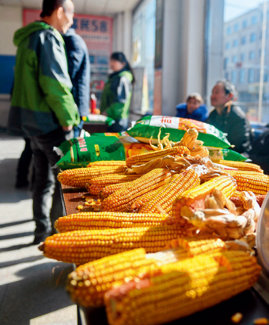 3月6日,全國產(chǎn)糧大縣吉林省四平市梨樹縣,農(nóng)民正在選購玉米種子 張楠攝/本刊