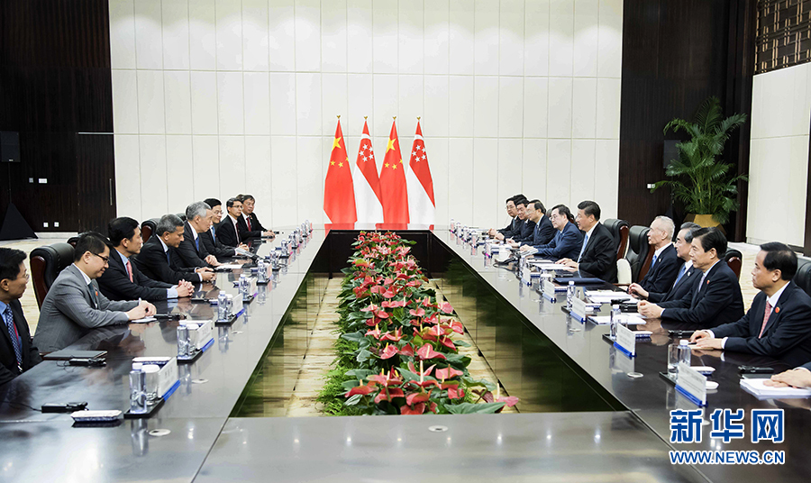 習(xí)近平指出,中新關(guān)系發(fā)展同中國改革開放息息相關(guān)。當前,中國特色社會主義進入新時代,新加坡正在實施“未來經(jīng)濟發(fā)展戰(zhàn)略”。雙方要結(jié)合新形勢新特點,對雙邊關(guān)系和務(wù)實合作作出新的戰(zhàn)略謀劃和頂層設(shè)計。雙方要推進政府間大項目合作。要加強“一帶一路”框架內(nèi)合作,繼續(xù)打造好兩國共建的“南向通道”,將“一帶”和“一路”更好連接起來。中方愿同包括新方在內(nèi)東盟國家加強溝通協(xié)調(diào),實現(xiàn)“一帶一路”倡議同東盟發(fā)展規(guī)劃更好對接,構(gòu)建更為緊密的中國-東盟命運共同體,希望新加坡發(fā)揮積極建設(shè)性作用。