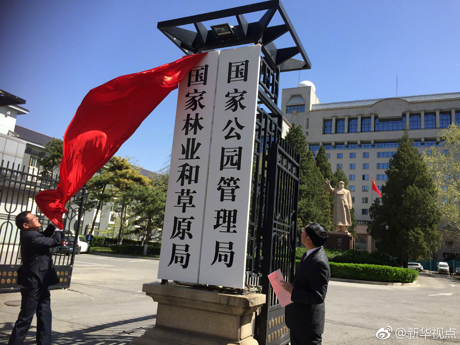 國(guó)家林業(yè)和草原局、國(guó)家公園管理局4月10日正式揭牌,由自然資源部管理,這對(duì)統(tǒng)籌山水林田湖草系統(tǒng)治理具有重要意義。(新華社“新華視點(diǎn)”微博 記者 侯雪靜 胡璐)