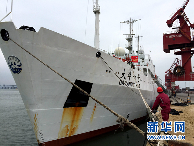 ??? 這是4月15日拍攝的停靠在廈門現(xiàn)代碼頭的“大洋一號”科考船。當(dāng)日,搭載“潛龍三號”無人無纜潛水器和70名科考隊員的“大洋一號”科考船從廈門起航,奔赴南海執(zhí)行“大洋一號”綜合海試B航段科考任務(wù)。這也是目前我國最先進的自主無人潛水器“潛龍三號”首次出海。新華社記者 劉詩平 攝