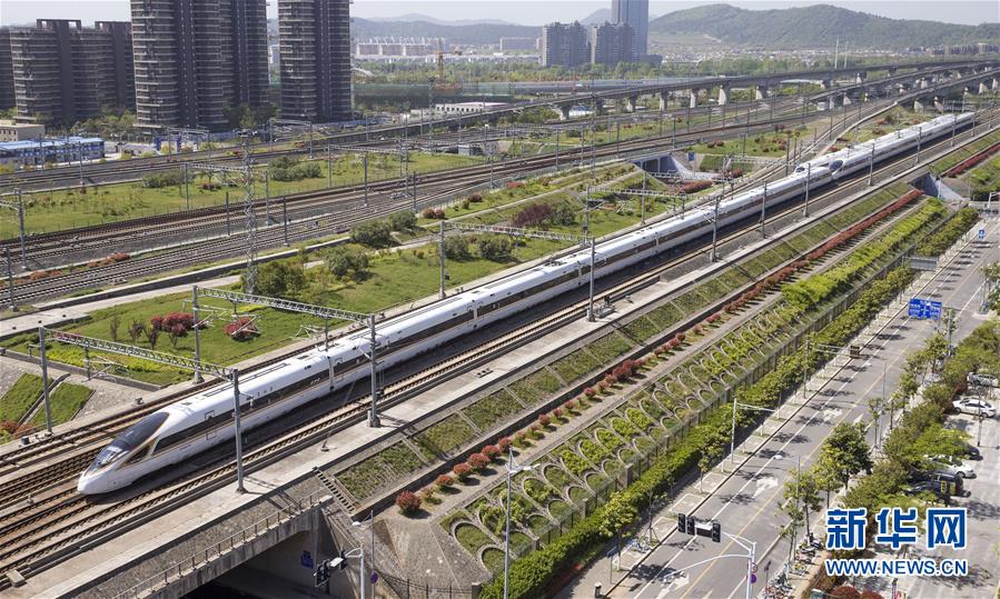 4月9日,一列“復(fù)興號(hào)”動(dòng)車組列車行駛在京滬高鐵南京市境內(nèi)。國家統(tǒng)計(jì)局4月17日發(fā)布數(shù)據(jù),初步核算,一季度國內(nèi)生產(chǎn)總值198783億元,按可比價(jià)格計(jì)算,同比增長6.8%。 新華社發(fā)(蘇陽 攝)