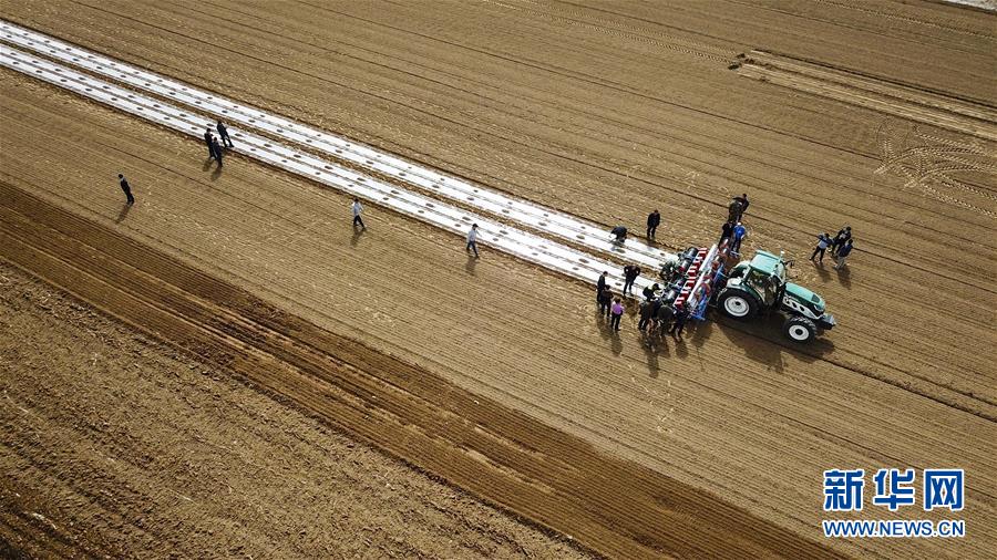 在新疆庫車縣牙哈鎮(zhèn)的一處棉田,“智能拖拉機(jī)”在進(jìn)行播種作業(yè)(3月23日無人機(jī)拍攝)。國家統(tǒng)計(jì)局4月17日發(fā)布數(shù)據(jù),初步核算,一季度國內(nèi)生產(chǎn)總值198783億元,按可比價(jià)格計(jì)算,同比增長6.8%。 新華社記者 胡虎虎 攝
