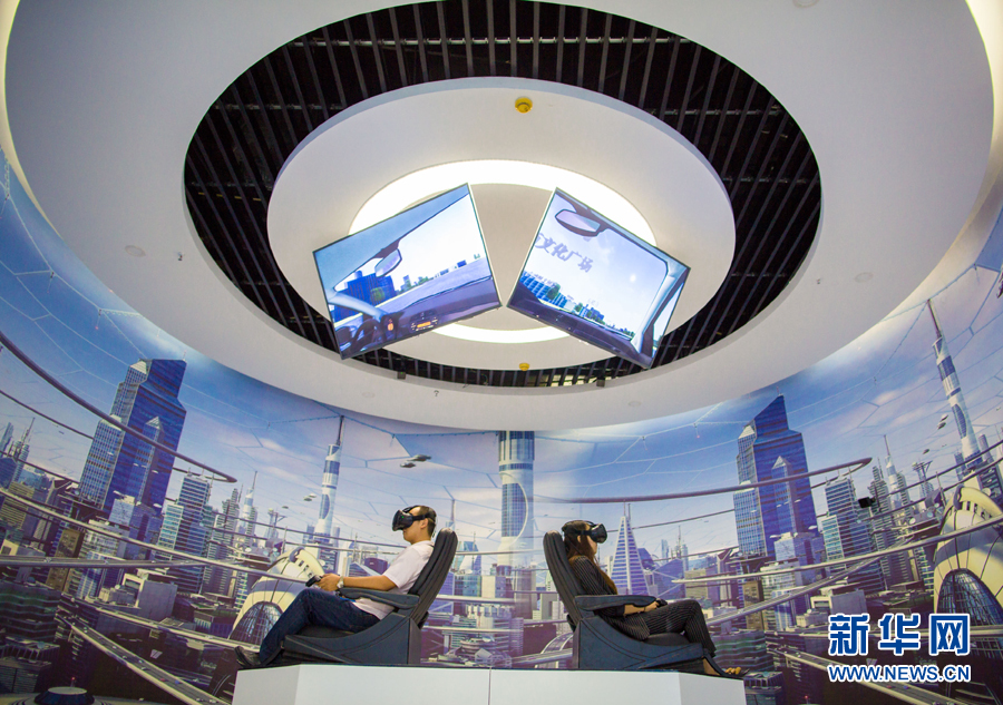 市民在內(nèi)蒙古呼和浩特玉泉區(qū)大數(shù)據(jù)應(yīng)用產(chǎn)業(yè)基地體驗VR眼鏡(2017年8月1日攝)。新華社發(fā)(丁根厚 攝)