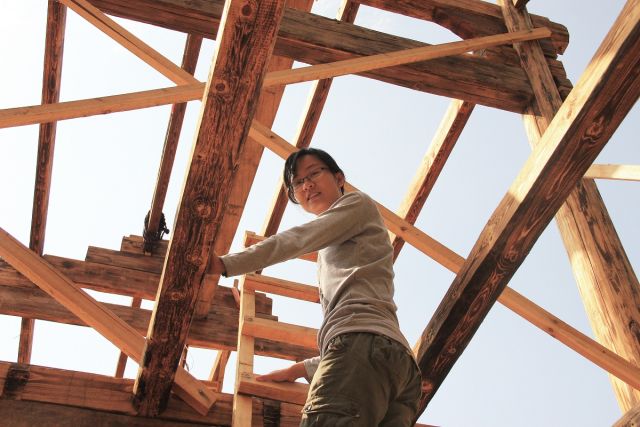隨后,“女人不能跨過木料”的納西“禁忌”被化解了?!斑@個漢族女娃是北京來的博士,是來研究咱們蓋房子的,咱們的規(guī)矩不管她?!闭颇拇髱煾禇畈髡f。
