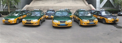 4月23日,北京市刑偵總隊(duì)大院內(nèi),停放有10多輛出租車,從外觀來看與普通出租車無異。