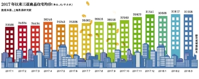 不過,海南房價并未得到有效抑制,反而持續(xù)上漲。據(jù)克而瑞數(shù)據(jù)統(tǒng)計,2017年1-12月,三亞商品住宅成交均價從23566元/㎡上漲至31541元/㎡;1-11月,??谏唐纷≌山痪鶅r從10444元/㎡上漲至16317元/㎡。