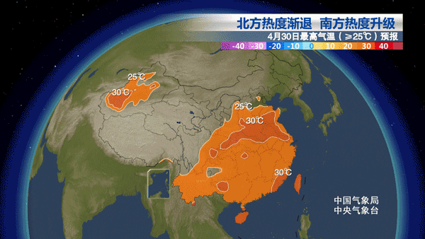 預(yù)計(jì)到明天白天,最高氣溫30℃以上區(qū)域?qū)?huì)集中在華南,福建東部和南部、廣東大部、廣西南部、海南島等地,而淮河以北大部地區(qū)最高氣溫將會(huì)不到25℃。