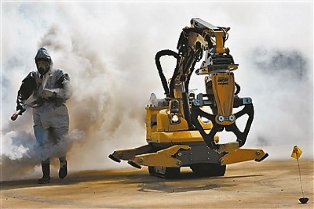 他是在真毒真防演練中,利用機(jī)器人等高科技裝備對(duì)突發(fā)事故進(jìn)行應(yīng)急處置的火箭軍防化兵