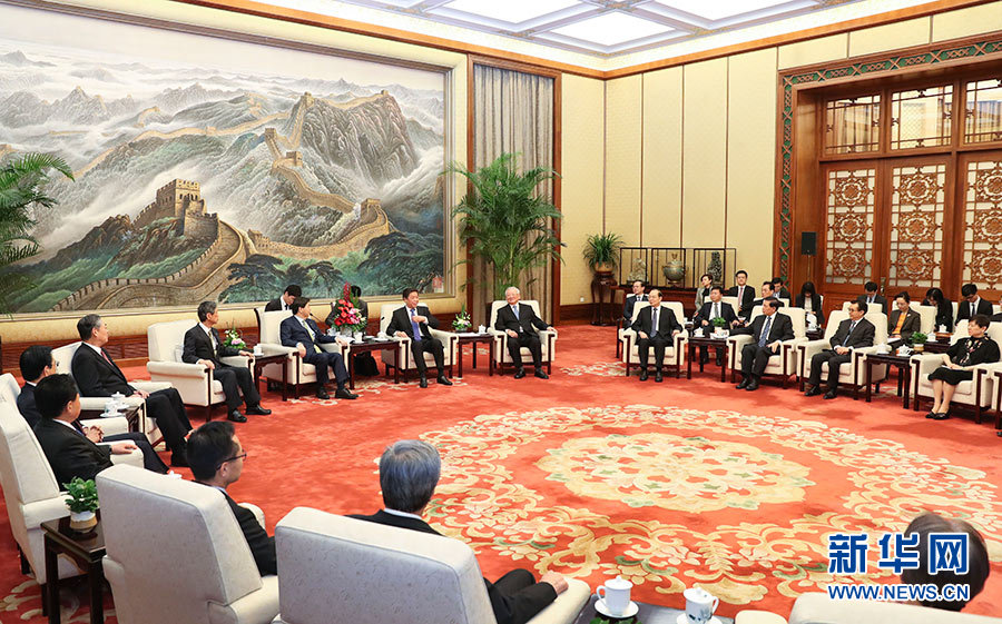 5月3日,全國人大常委會委員長栗戰(zhàn)書在北京人民大會堂會見日本文部科學(xué)大臣林芳正率領(lǐng)的日中友好議員聯(lián)盟代表團。 新華社記者 龐興雷 攝