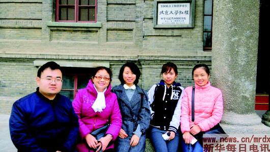 楊宗麗(左二)帶著學(xué)生參觀北大紅樓。圖片由受訪者提供