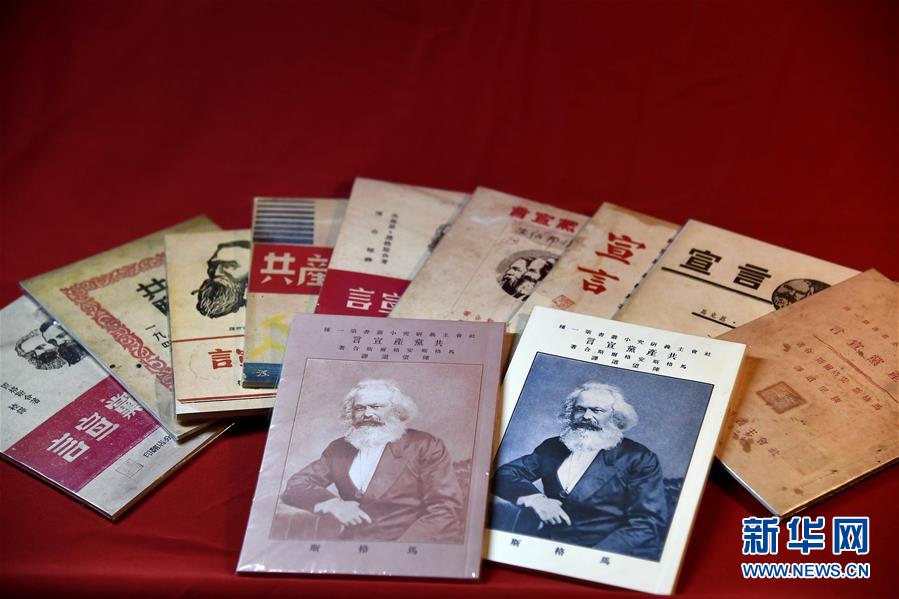 這是廣饒縣《共產(chǎn)黨宣言》紀(jì)念館收藏的早期多個版本《共產(chǎn)黨宣言》復(fù)制本(4月12日攝)。新華社記者 郭緒雷 攝