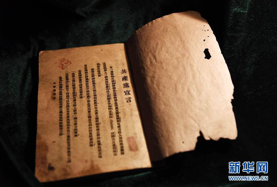 這是廣饒縣《共產(chǎn)黨宣言》紀(jì)念館收藏的1920年8月出版的《共產(chǎn)黨宣言》中文首譯本(4月12日攝)。新華社記者 郭緒雷 攝