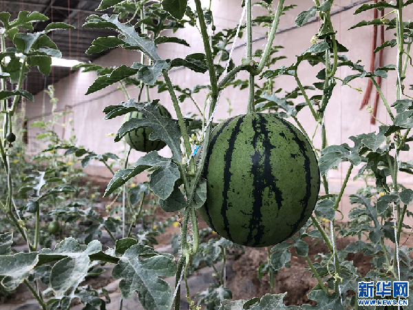 大棚里結(jié)出的西瓜。新華網(wǎng) 雪珍攝